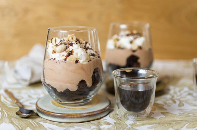 Ez a kávés brownie-pohárkrém szerintem jól passzol bármilyen eseményhez, de kifejezetten gondolok a házibulikra és a nem ültetett vacsorákra, ahol akár állva, beszélgetés közben is el lehet kanalazni egy ilyet. Kávé is van benne, még ébren is tart egy kicsit tovább. A brownie pedig mindenkinek a kedvence, miért ne csavarnánk még egyet rajta?