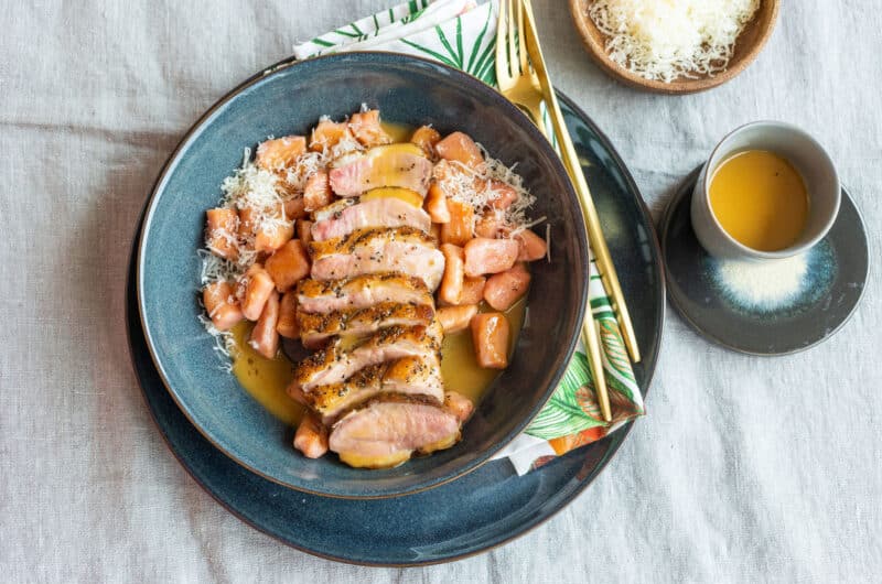 Íme egy jó kis őszi recept, nem csak Márton-napra! Most libamellel készült, de természetesen kacsából vagy sertésszűzből is szuper lesz. A libát nem szokás túlfűszerezni, itt is csak egy kis sót, borsot és rozmaringot kap, a mártással kiegészülve viszont a szokásosnál jóval érdekesebb lesz az élmény.