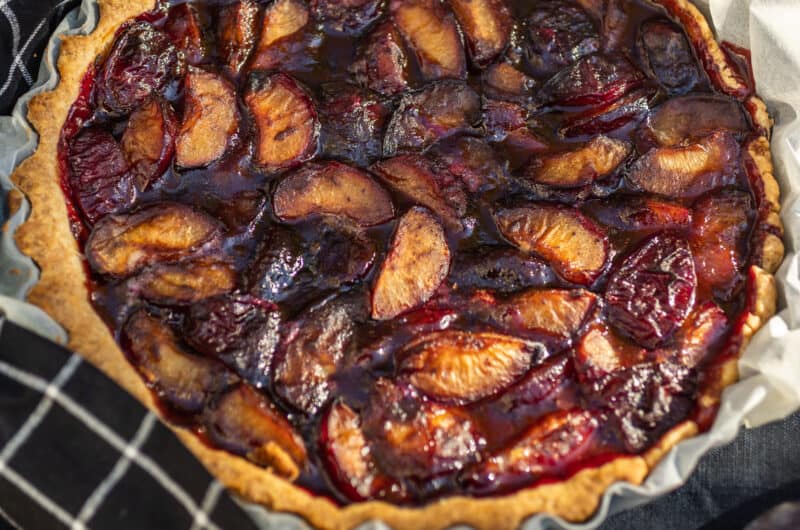 Egyszerű szilvás pitének tűnik, de nem az: kétféleképpen is kerül a töltelékbe szilva, friss gyümölcs és lekvár formájában is. Az ízeket gazdagítja még a sötétbarna cukor, egy kevés rum és még egy titkos hozzávaló: a balzsamecet is. A savak és a cukor összeolvadnak a gyümölccsel és nagyon izgalmassá teszik ezt a pitét. Igazi késő őszi sütemény, pont jó egy csésze tea vagy egy jó kávé mellé.