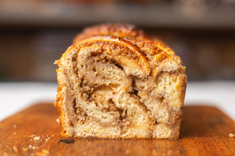 - Óvatosan áthelyezzük egy kivajazott szögletes gyümölcskenyér formába. Huzatmentes helyen 1 órát kelesztjük, majd 190 fokra előmelegített sütőben 30 percig sütjük.