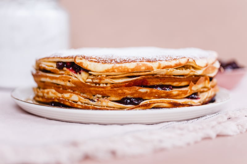 Sokszor elmondtam már, hogy a klasszik, feltekert palacsinta nélkül én bizony meg tudnék lenni, de a csúsztatott palacsinta egészen más műfaj. Lágy, könnyű és habos, hiszen ennek a tésztájához a tojásfehérjét habbá kell verni, ráadásul a palacsintáknak csak az egyik felét sütjük meg, így biztosan nem szárad ki. A töltelék lehet bármi, akár minden rétegre kerülhet más, én most maradtam a diós-lekváros verziónál – persze házi erdeigyümölcs-lekvárról beszélünk, amit szerintem érdemes frissen elkészíteni, ez a desszert megérdemli.