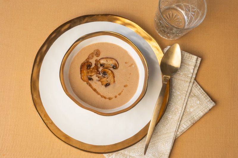 - Díszíthetjük pirított gombaszeletekkel, frissen aprított metélőhagymával vagy pirított baconnel.