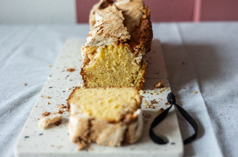 • Váltakozva a masszához keverjük a lisztet, a citromlevet és simára keverjük – nem kell túlkeverni. A citromkrémet a legvégén adjuk hozzá, és egy spatulával márványosan beleforgatjuk. A tésztát átöntjük az előkészített sütőformába és félretesszük.