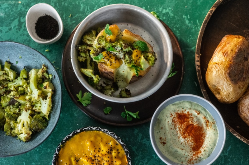 A héjában sült krumpli igazi komfortétel – egyszerű, laktató, melengető, könnyen összedobható akár vacsorára vagy baráti összejövetelekre is, és mindenféle toppinggal variálható. Én most egy vegán verziót mutatok két extra szósszal, amitől nagyon izgalmas lesz ez a pofonegyszerű recept. Az amba szósz tulajdonképpen egy mangószósz, amihez kifejezetten éretlen mangó dukál, a másik pedig egy fűszeres zöld tahini öntet lesz. Mindkettő olyan ízbomba, hogy még a legádázabb húsimádók sem panaszkodnak majd a vega fogás miatt.