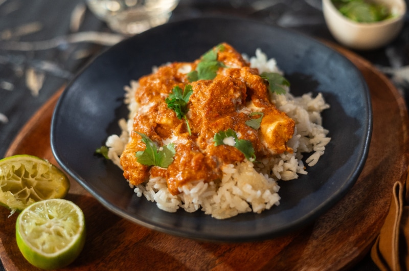 A hideg idővel együtt a fűszeres, laktatóbb fogások is megérkeznek minden évben a konyhámba, és az egyik első étel, amit ilyenkor készítek, az szinte biztos, hogy egy jó kis indiai vajas csirke. Főleg, amióta rájöttem, hogy nem feltétlenül kell ezért étterembe vándorolni, otthon is szuperül össze lehet dobni. Két titka van: nem szabad belőle sajnálni a fűszereket, és jó sűrűre kell főzni a mártást. Mivel nálam a gyerekek is imádják, kevesebb chili kerül bele, de ez semmit nem von le az értékéből, sőt, aki viszont szereti a csípőset, nyugodtan tegyen bele többet!
