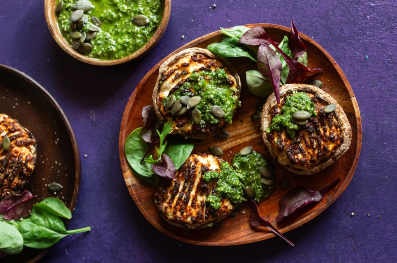 - A tökmagpesztót a sült gombafejekre kanalazva tálaljuk.