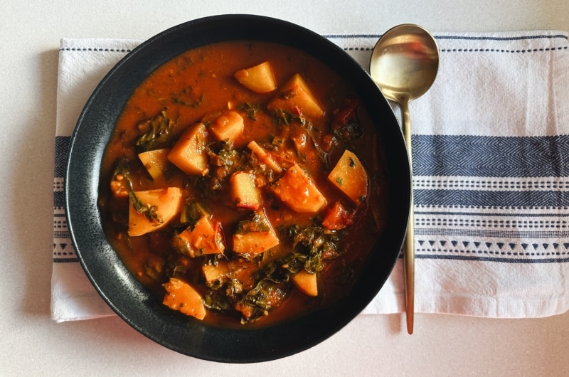 Szeretek tudatosan, és a heti terveimnek megfelelően bevásárolni, de be kell vallanom, a piacon ez sokszor megdől, és bizony elcsábulok a szezon zöldségeiben és gyümölcseiben dúskáló asztalok között. Ilyenkor sok-sok olyan zöldség landol a kosaramban, amiről még nem tudom, mi is lesz belőle – általában azért, mert annyi ötlet jut eszembe hirtelen. A csodás színű mángoldból és krumpliból végül ezúttal egy villámgyors curry-t készítettem. Ne félj a sok fűszertől, nagyobb boltokban mindegyik kapható, a végére pedig isteni, gazdag, melengető fogássá áll össze a sok összetevő.