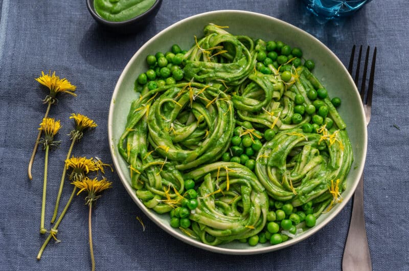 Linguine spenótpesztóval és zöldborsóval