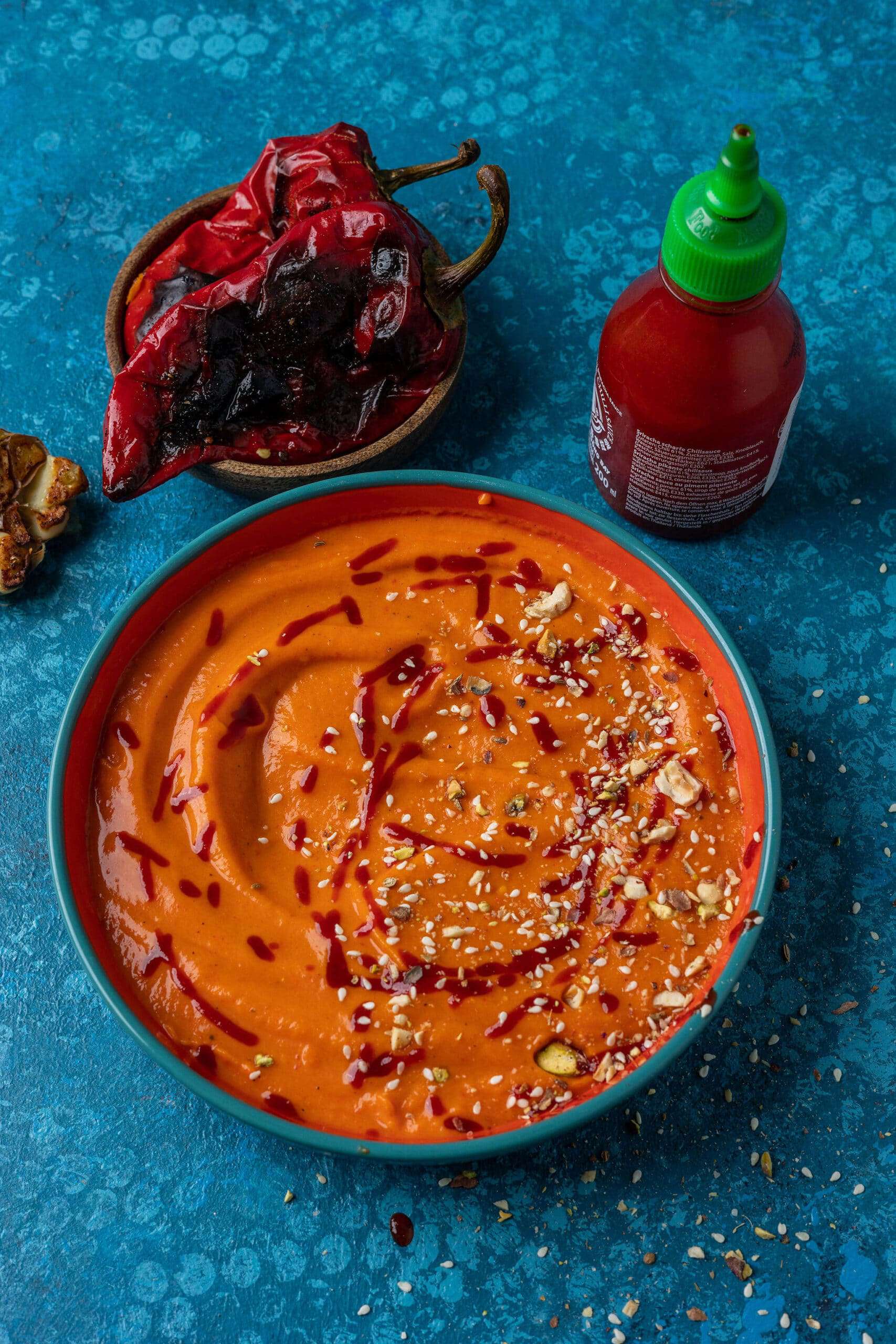 • Összefőzzük, ha szükséges hígítjuk még vízzel vagy alaplével. Ha jól összefőtt, az egészet pürésítjük, és forrón tálaljuk. Tálaláskor megszórhatjuk pirított magvakkal.
