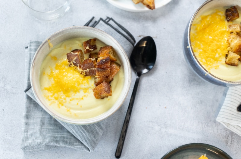 Télen gyakran kerül az asztalra valamilyen krémleves, gondolom, nem csak nálunk van ez így, hiszen a hidegben jól jön egy melengető, tartalmas fogás akár ebédre, akár vacsorára. A karfiolkrémlevest tovább gazdagítottam sajttal és kesudióval, a kurkumától pedig a színe is pompás, és nem mellékesen 30 percen belül az asztalra kerülhet.