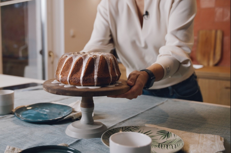 - A sütőből kivéve hagyjuk a formában teljesen kihűlni, majd kiborítjuk. A mázhoz simára keverjük a porcukrot a citromlével, a kuglófra öntjük, majd felszeleteljük.