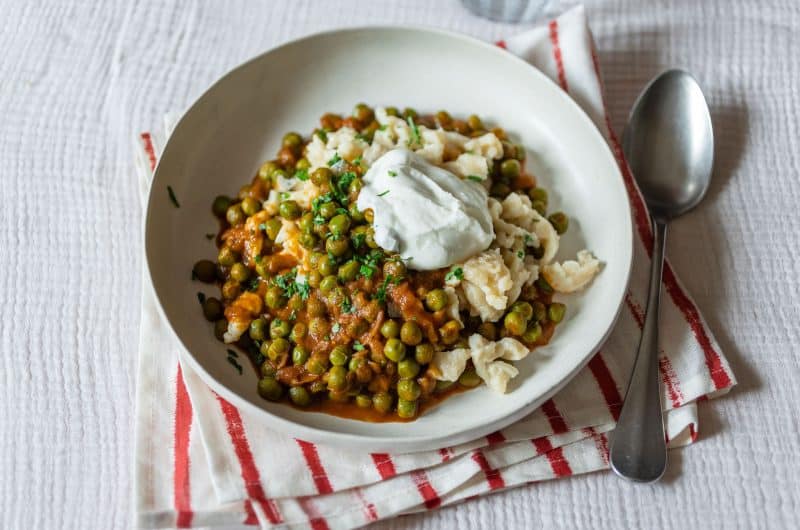 Tudom, hogy a pörköltről mindenkinek a különböző húsos változatok jutnak az eszébe, de a magyaros vega fogások között nekem ott van a top 10-ben ez is. Ahogy ősszel a gombapaprikás, úgy tavasszal a zöldborsópörkölt az egyik kedvenc magyaros ételem. Azt csendben jegyzem meg, hogy remek fehérjeforrás a zöldborsó, így ez az étel életmódváltó étrendbe is remekül beillik. Az sem véletlen, hogy a nokedlit tönkölybúzaliszttel készítettem.