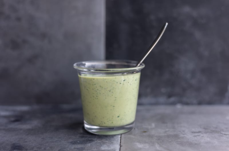 Nemrég mutattam egy mogyoróvajas öntetet az oldalon, amit a már majdnem kiürült üvegben kevertem ki, hogy az utolsó cseppeket is fel tudjam használni. Ez a módszer tényleg bármilyen magvajjal működik, például ez a zöldfűszeres-tahinis majonéz is hasonlóképpen született, de teljesen más ízvilágú öntet lett belőle. A két csokor zöldfűszernek köszönhetően könnyű, friss és üde, próbáld ki sült zöldségekkel vagy salátára, szerintem te is imádni fogod.